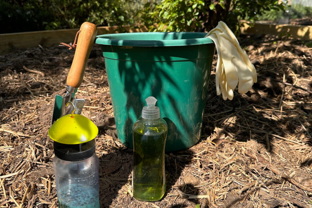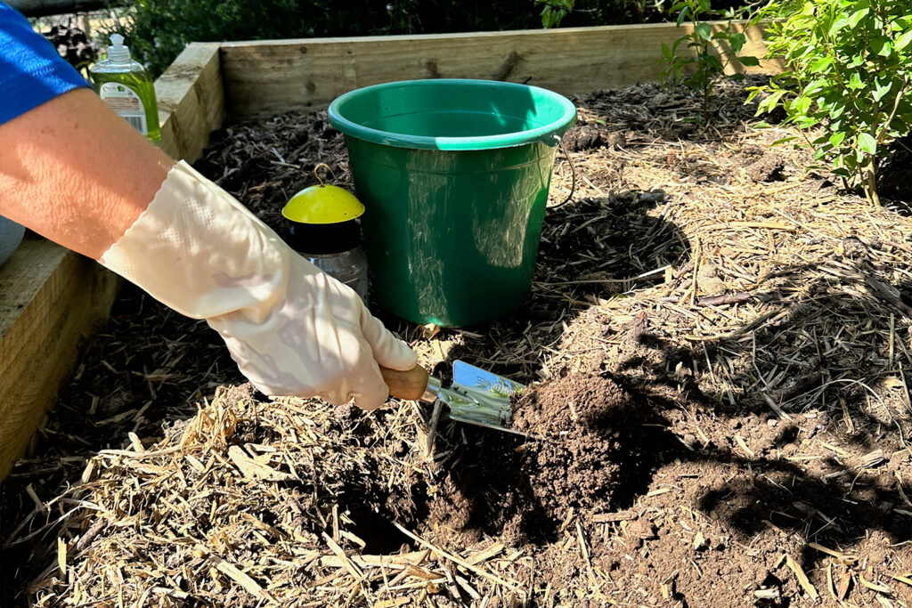 In the designated area, use your spade or trowel to dig a hole about 30cm deep to prepare for the contents of the trap.